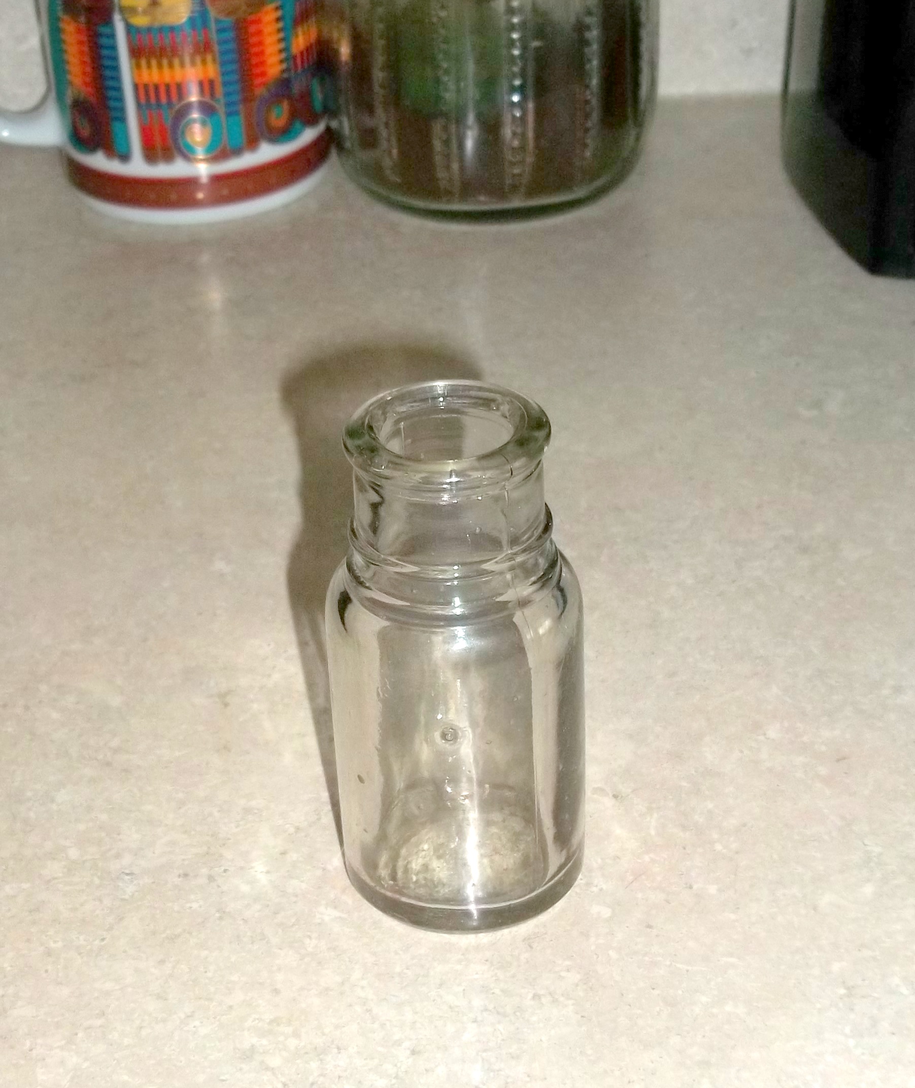 I’ll have to be really careful as I work this cos there are pieces of glass and old pottery, broken, down in the fill too. While the guy was digging with the big machine, he turned up something shiny and I went to retrieve it. What I found was a neat little bottle, intact, that was buried under the ground for something like 75 years. Not valuable except as a memento of my history here. Some research tells me that it probably held medicine or small food, like olives. I found a site that helped me with that. Made probably before 1930, since it was made in 2 pieces and put together, has a suction scar on the bottom, has bubbles in the glass, and has no screw threads for a lid. It would have been closed with a cork.