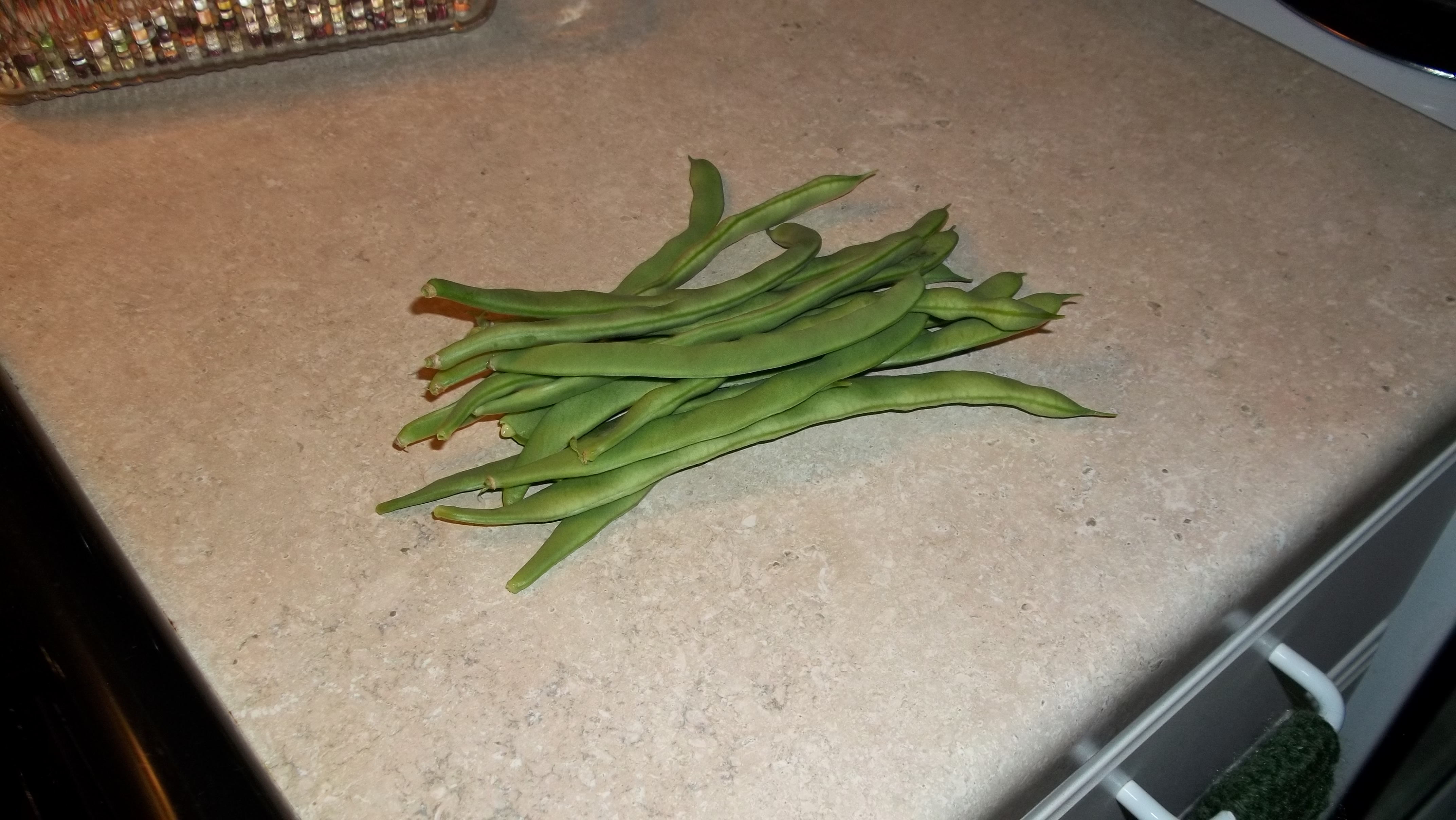 I just picked just a small handful of green beans, and lots more coming planted in two places. These are heirloom pole beans, which means they aren’t a hybrid bean and I can let some go to seed for next year. Green beans are a healthy food and I like healthy! These will go into a pot of soup tomorrow, with other good things.