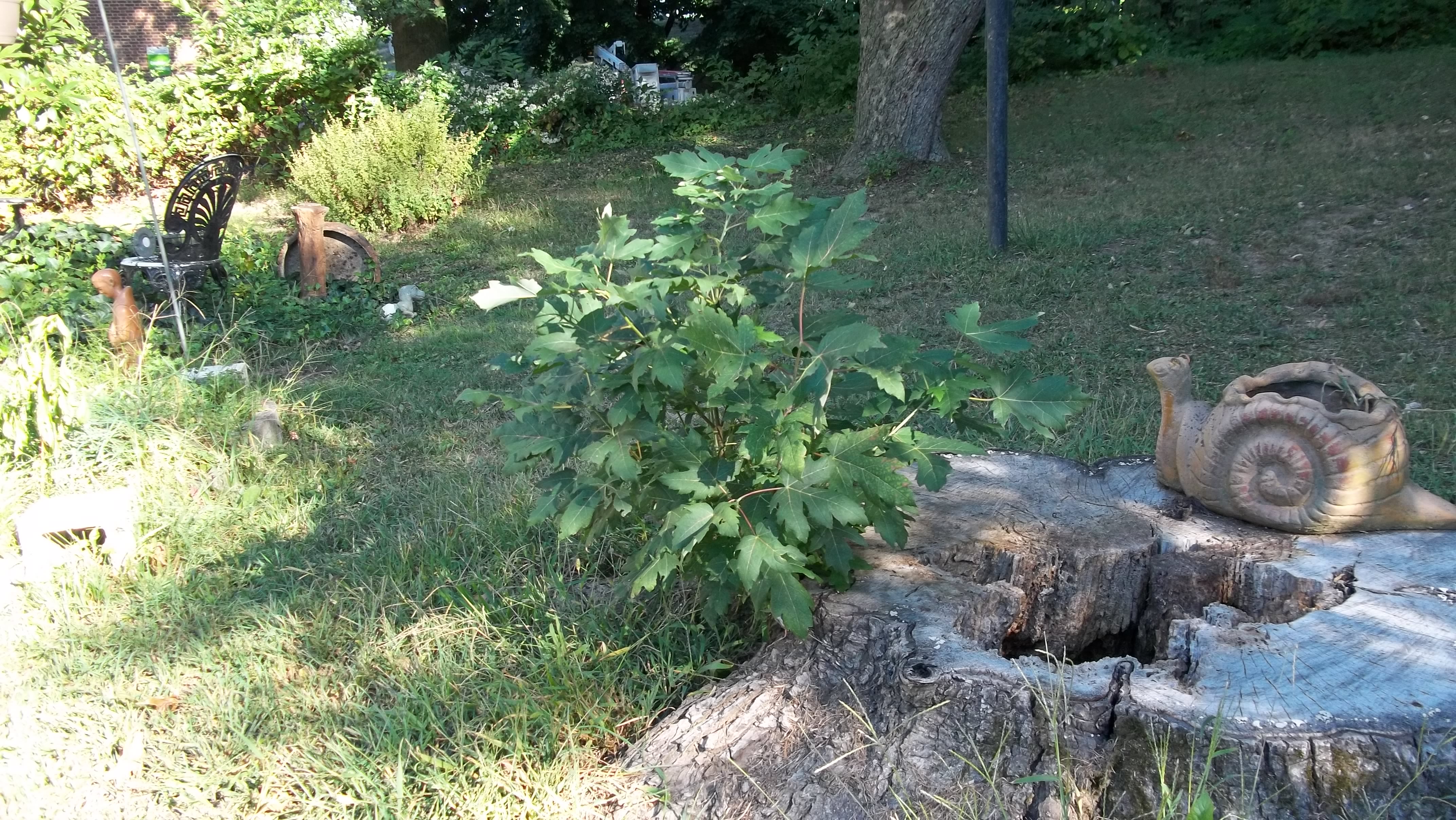 I’ll watch for the old maple tree to keep trying if its new shoots make it thru the winter. I had to have the tree cut down last fall, and this shot up out of it this summer.
