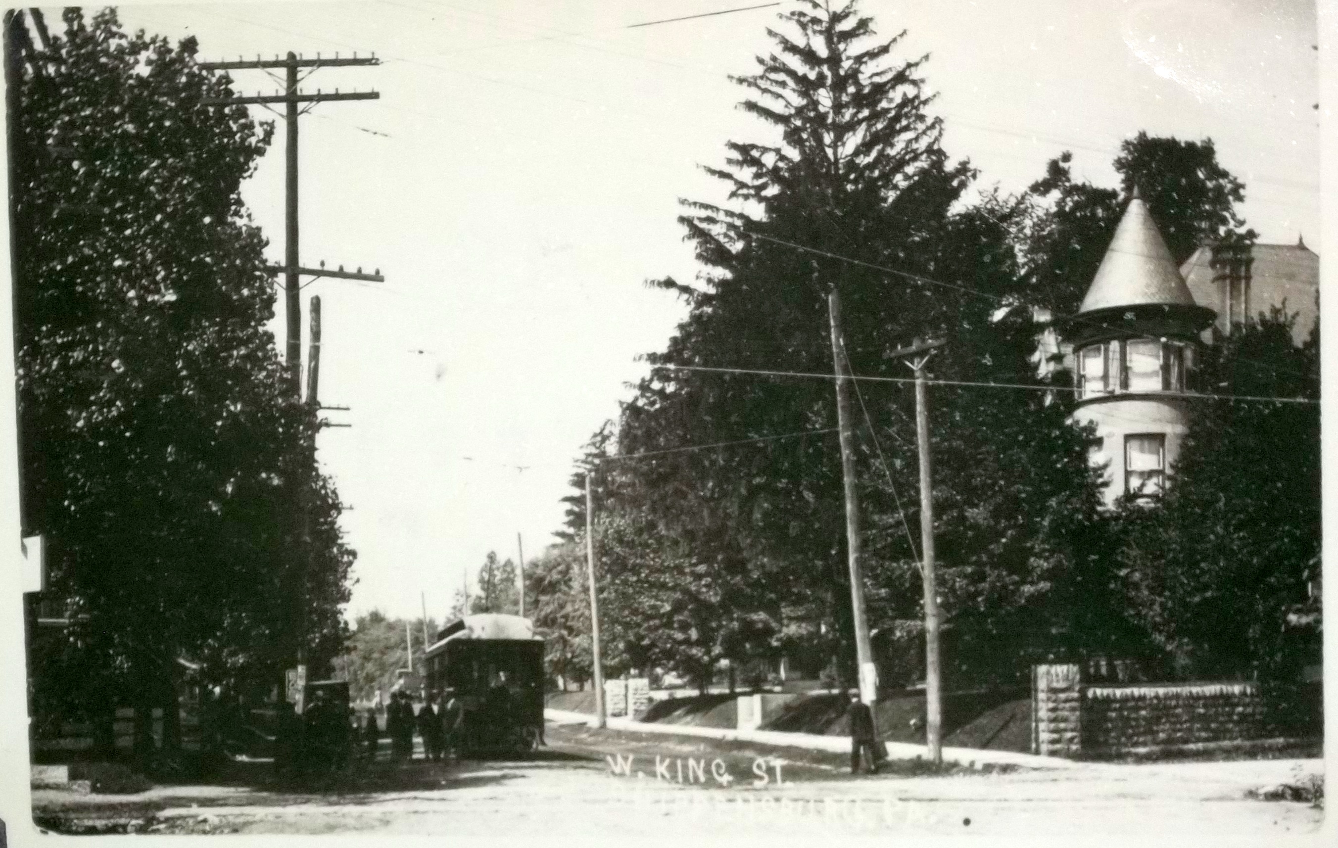 Burkhart’s 1920 picture above shows the trolley at the end of the Shippensburg line, at the corner of King and Morris Streets.