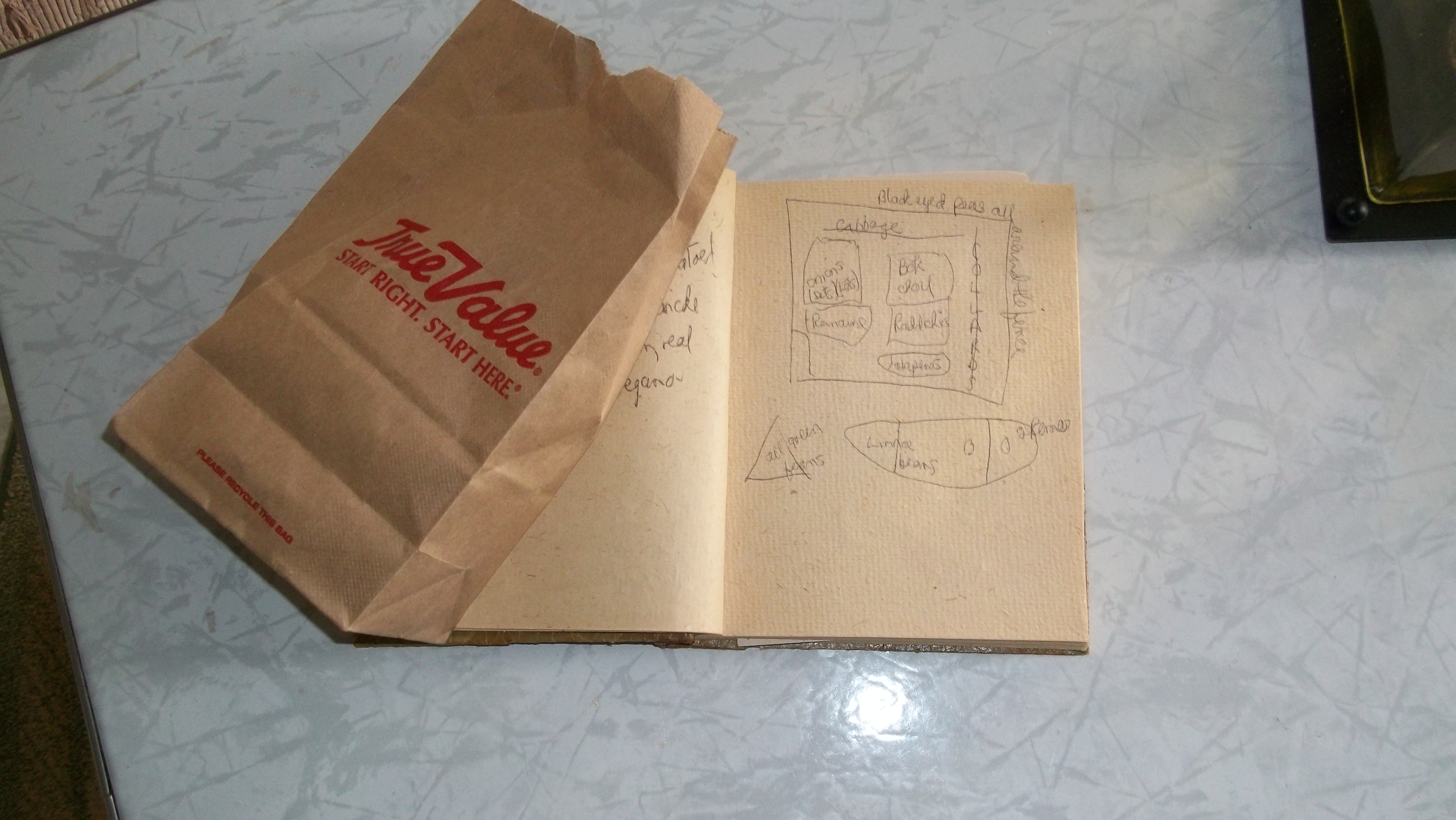 During the winter, I plan out what will be planted where outside.  Every gardener should have a plan and a map of some sort to know where things will be, and later, maybe which things are which as they start to come up.  I have a hand made  book that was given to me as a gift years ago, and that seems a very appropriate place to make garden notes.  I also write notes in there as to what did well and anything important I learned  during a gardening season.  (And maybe what not to do again………)