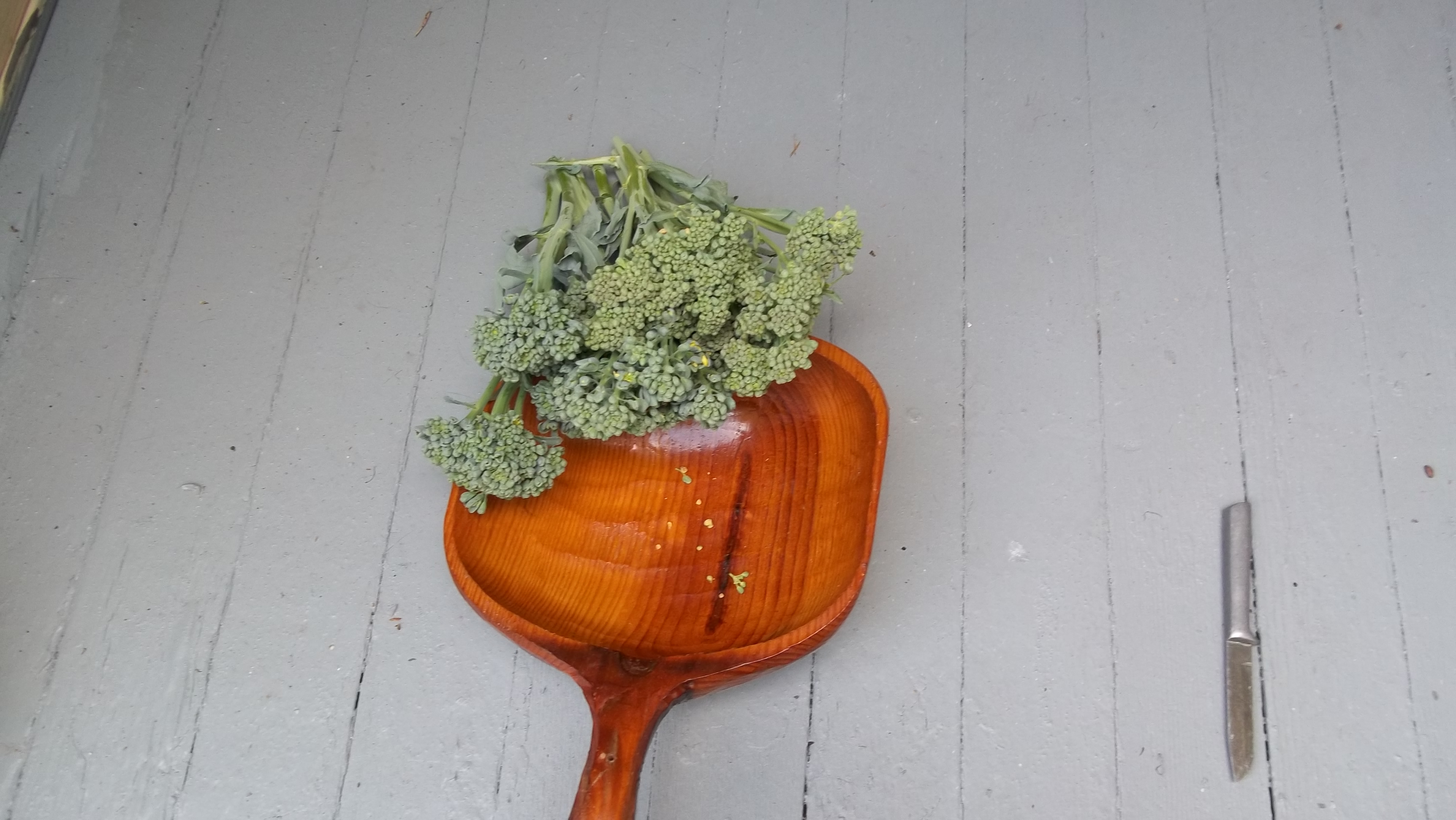 Research, research, I didn’t do enough of it. Turns out this broccoli is a cool weather plant and these small heads are the plant going to bolt. I’ve collected this much twice and cooked it and it is good: like regular broccoli but a little stronger flavor.