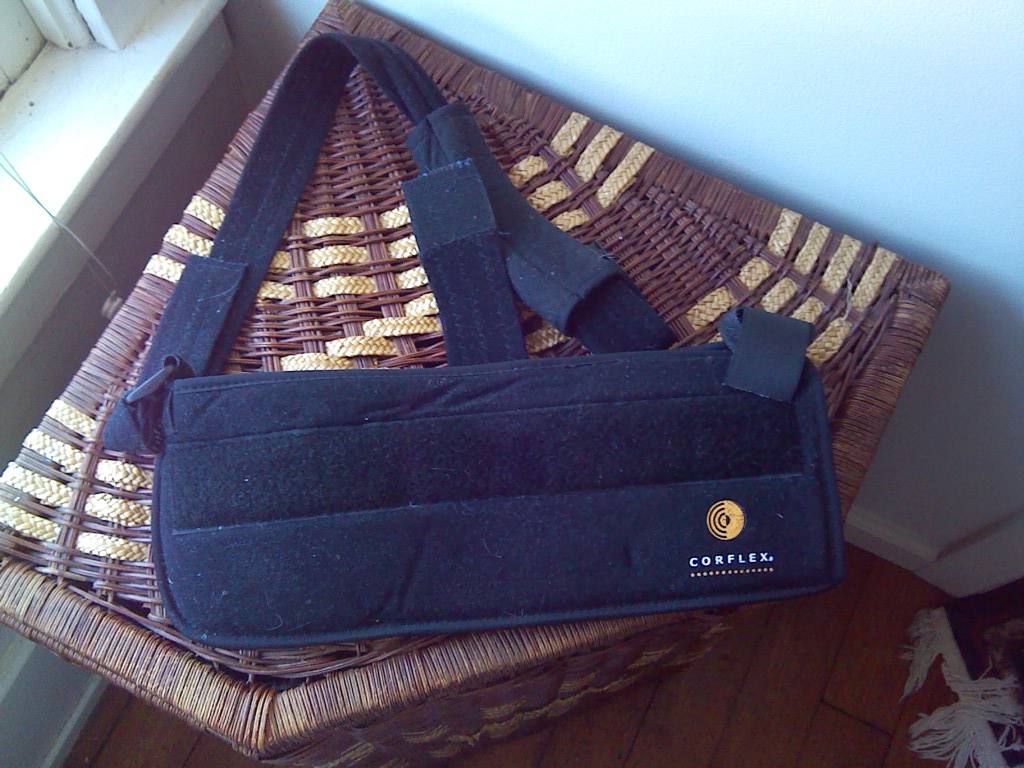 It’s great to have the sling off after rotator cuff surgery. The pillow that was attached to hold my arm out away from my side was to allow the rotator cuff tendons to heal, and let the titanium stitches inside become one with the healed tissue, attaching it to the bone. The pillow was the worst part of this, and I brought the sling along home, but asked the doctor to symbolically throw that pillow away for me. I didn’t want to carry it anywhere else.