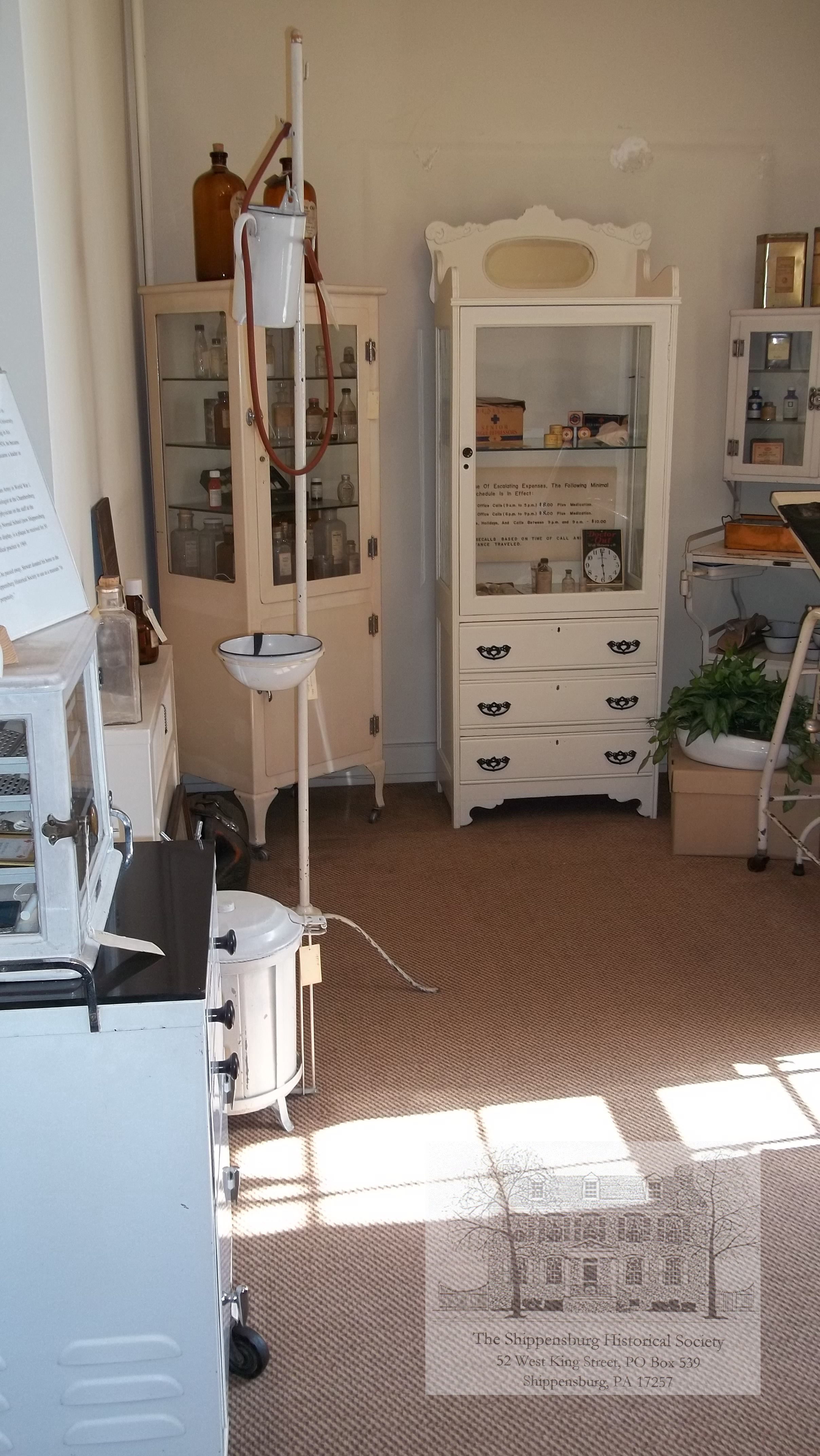 This step into our medical past is located at Shippensburg Historical Society, http://www.shippensburghistory.org/ https://www.facebook.com/ShippensburgHistoricalSociety Dr. Alexander Stewart was responsible for us having his home to use to house our collection, and also donated most of the items from his office when he stopped practicing in 1963. He went into practice in 1920, was a general practitioner for a few years and then returned to school to study the new technology of the time: radiology. He was the first doctor to use x-rays at the Chambersburg Hospital.