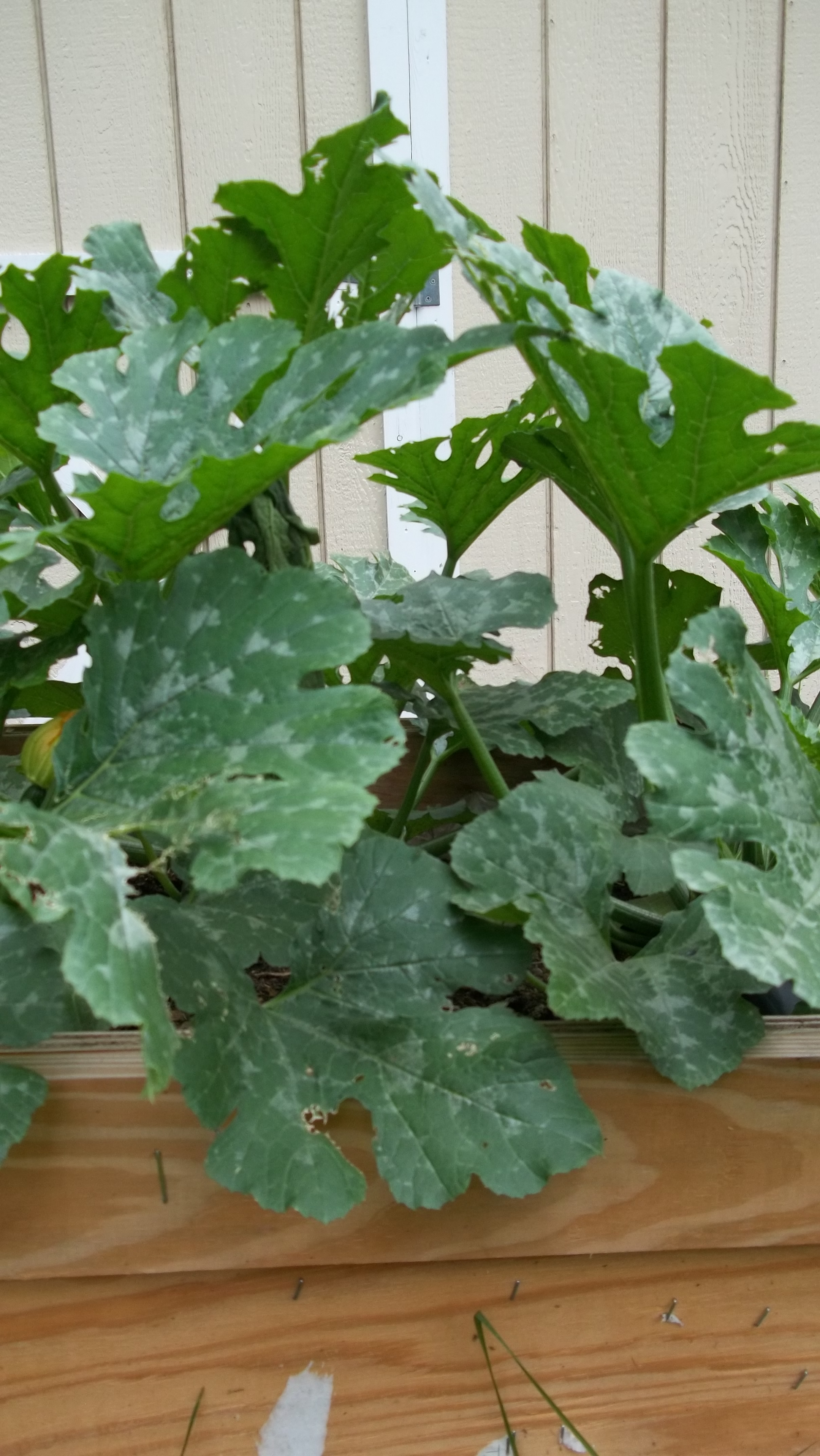 She got some seeds for small plant zucchinis, meant to be in large containers, and the tiny seedlings we planted in her large wooden boxes have gone crazy.
