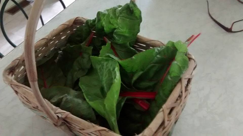 There’s only a few good things ready to harvest from the garden right now.  I was just out picking some Swiss chard, and earlier Eliza picked two nice zucchinis.  Since a lot of her recent years were spent in Texas, she’s excited to be able to grow real veggies here and pick it, clean it, eat it, love it! She has her big knife ready to tear into them!