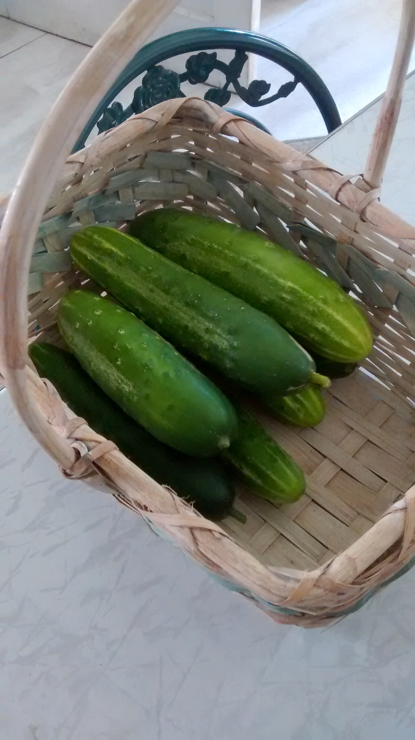 I always like to plant extra, for several reasons. For one thing, something might not grow, and then you wouldn’t have enough. And if you’re planting seeds, seeds really don’t cost much and some veggies are things you can save seeds for for other years. And, if they all grow, and all produce, you have enough to share, which is one of the joys of gardening. I always used to have enough tomatoes to share some, and this year, it looks like there might be cucumbers to share. We all already had some here today, and I picked this nice basket full and took some to a dear friend who didn’t get to plant garden this year cos life intervened. Cukes and onions were planned for their supper tonight. Mine too! And Dylan didn’t realize we were growing dill, and just asked where it is, so I guess cukes and onions will be on their menu too. The bounty, the blessings, the summer…………it’s all good.