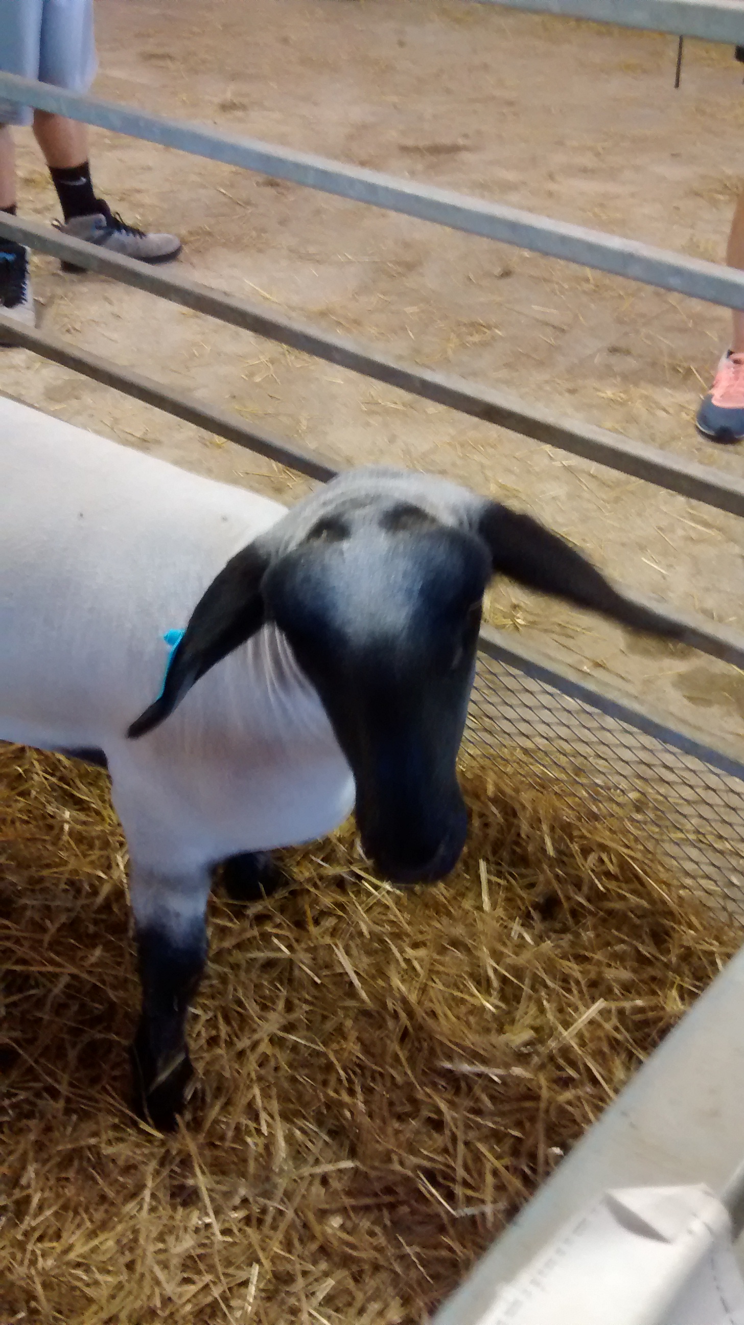 Early that first morning you can watch, and hear, the sheep getting sheared. The sheep always have a lot to say about getting on to the platform that holds their head still while they get sheared. Waiting to shear them that morning helps to keep them cleaner for their competition, and gives them a nice smooth coat. (They wash the other animals right before they compete.) I always like the ones with the black faces.