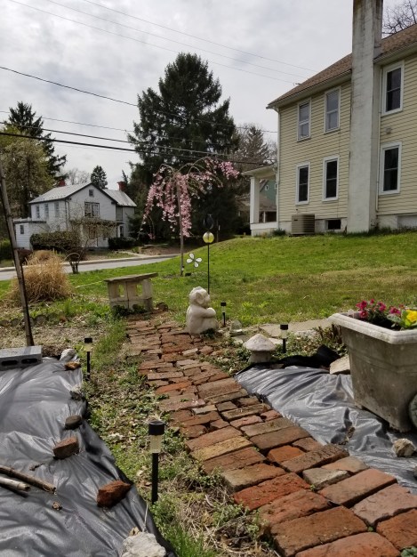 • Ha, how could you forget about Albert, who is so creepy? He’s enjoying the spring and soon sweet Williams and peonies will bloom right near him. I’m watching the tree for the little shoots you told me about. 😊