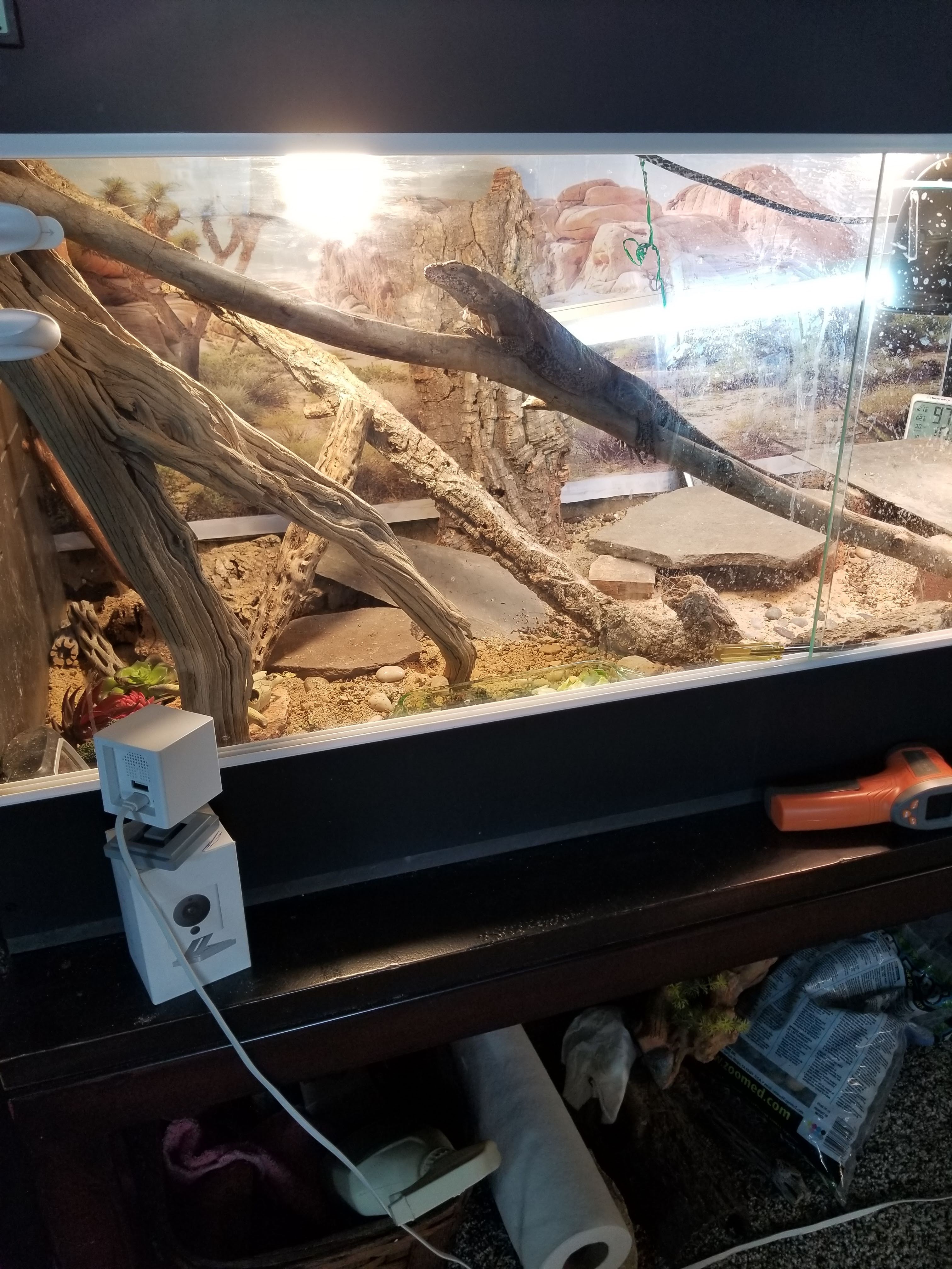 I’m learning how to give him more enrichment in his house. Sticks to climb, and rocks piled safely to be stable make his house look more like where he comes from. Not many people breed them here, so he is likely wild caught, and can remember what his true desert home looked like.