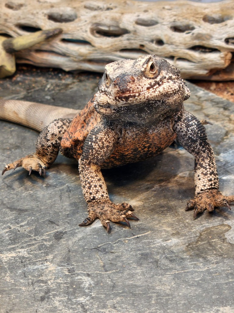 I had one wonderful desert lizard and sure wasn’t looking for another one. I often said if I ever got another one, it would be a chuckwalla. Then friends who run a reptile rescue had a chuck that they wanted to find a home for, to free up some space in their rescue. She asked me if I would like to have Chuckie, and take him and give him a good home. (She knew how I treat my little usomastyx, who is living her best life with me.)
